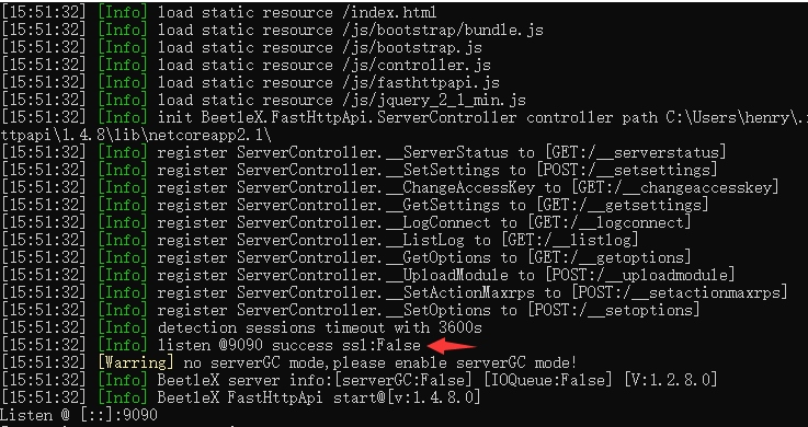 static void Main(string[] args) { mApiServer = new BeetleX.FastHttpApi.HttpApiServer(); mApiServer.Option.SetDebug(); mApiServer.Register(typeof(Program).Assembly); mApiServer.Open(); Console.Write(mApiServer.BaseServer); Console.Read(); }