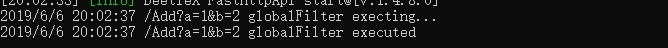 public class GlobalFilter : FilterAttribute { public override bool Executing(ActionContext context) { Console.WriteLine($"{DateTime.Now} {context.HttpContext.Request.Url} globalFilter execting..."); return base.Executing(context); } public override void Executed(ActionContext context) { base.Executed(context); Console.WriteLine($"{DateTime.Now} {context.HttpContext.Request.Url} globalFilter executed"); } }