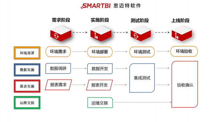 其实报表平台建设也有“套路”可循!报表平台的建设分4个阶段,分别是需求阶段、实施阶段、测试阶段和上线阶段。需求阶段是第一个阶段,工作量占整个项目工期的40%左右,是项目中最重要的阶段。