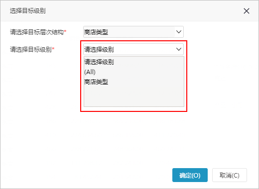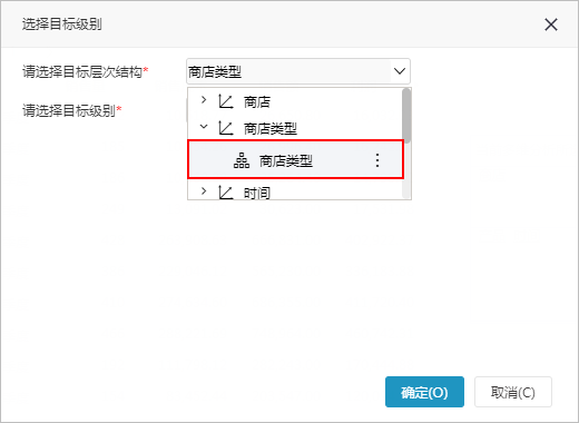 2.在弹出的“选择目标级别对话框”中首选选择目标维度的层次结构。