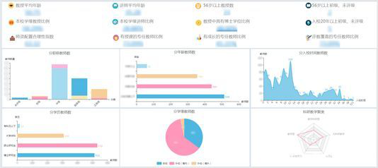 Smartbi通过分析年龄、职称、学历等分布请况,发现更多结构问题,掌握师资结构合理性变化情况。