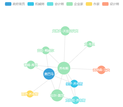 关系图使用圆圈和连线表示节点与节点之间的关系。根据展现方式的不同分为力导向关系图和环形关系图。