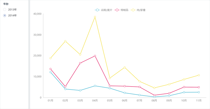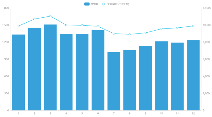 联合图是指以线图、柱图、面积图或者散点图任意两两组合(双线图、双柱图、双面积图包含在内)的表现形式来展现两个或两个以上数据指标情况。单Y联合图、双Y联合图;