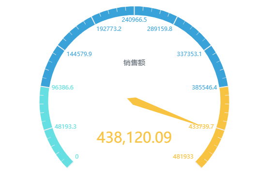 油量图是指以油量表的形式来展现指标数据。有一个圆形的表盘及相应的刻度,刻度表示数值的范围,有一个指针指向当前数值,可直观的表现出某个指标的进度或实际情况。