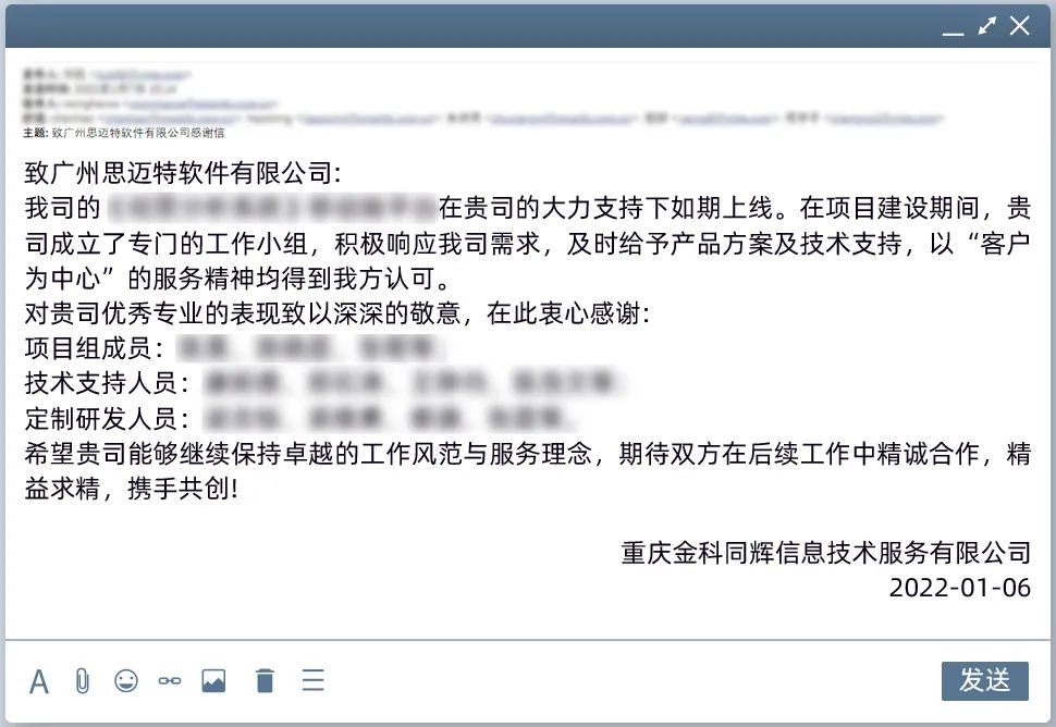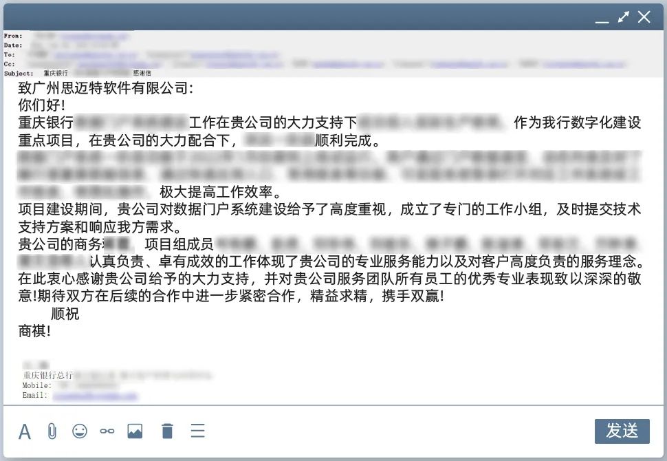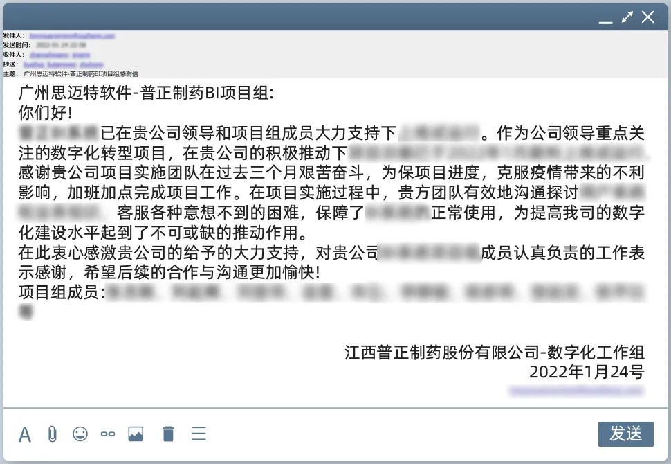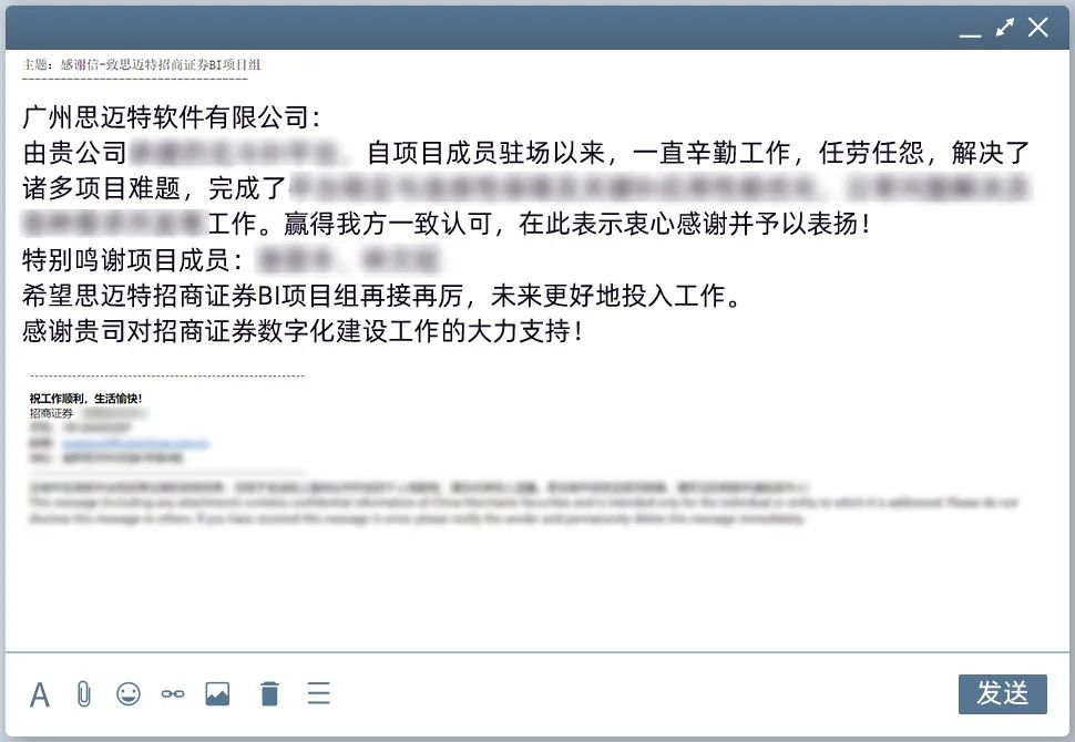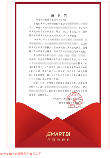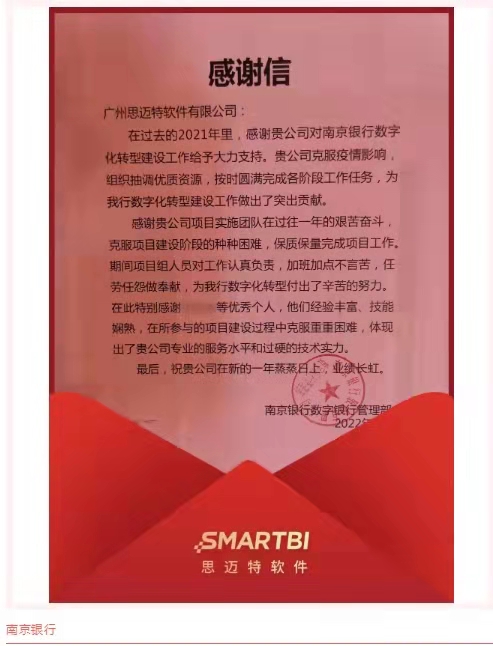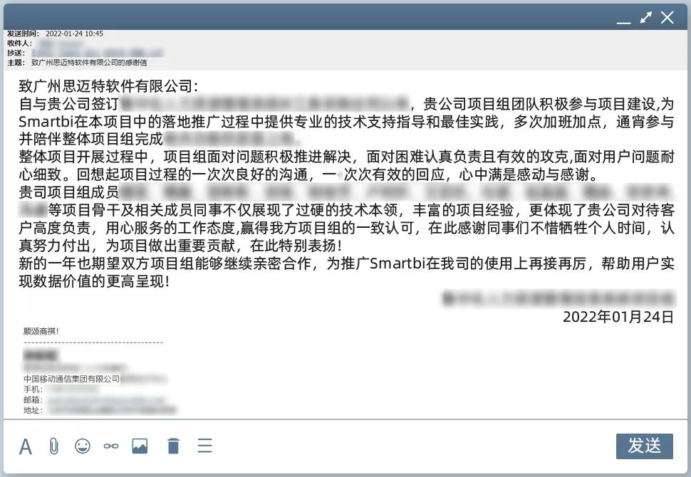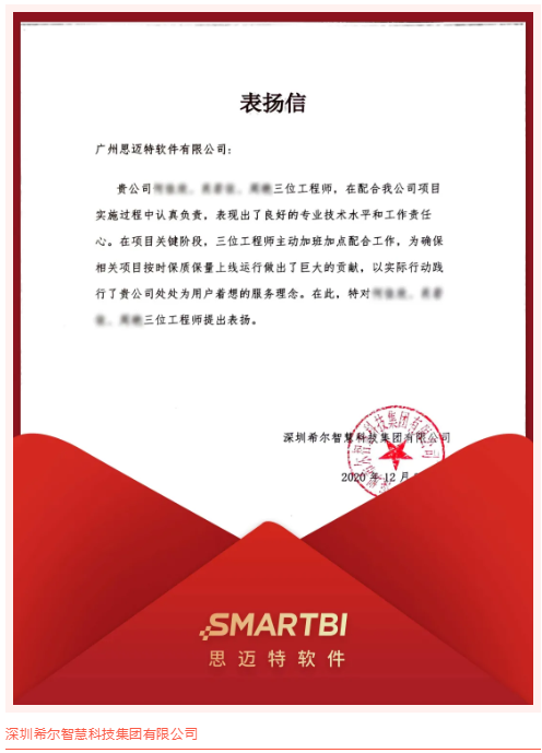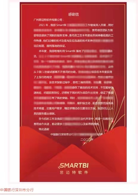 每一封感谢信背后,都是Smartbi项目团队艰苦奋斗的小故事,而这一个个“平凡”的小故事,让我们倍感鼓舞,凝聚更强大的力量,坚定前行。