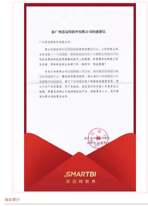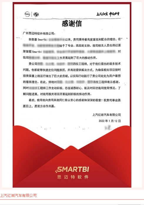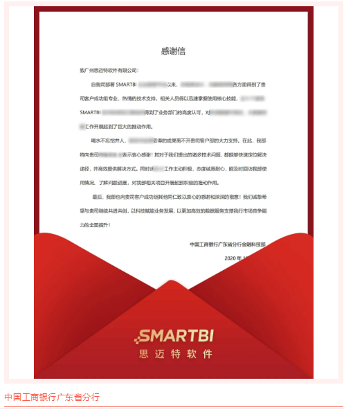 正是我们的努力与坚持,我们频频收到客户的好评和点赞,字里行间,都是客户对Smartbi产品技术、团队服务的认可与肯定。