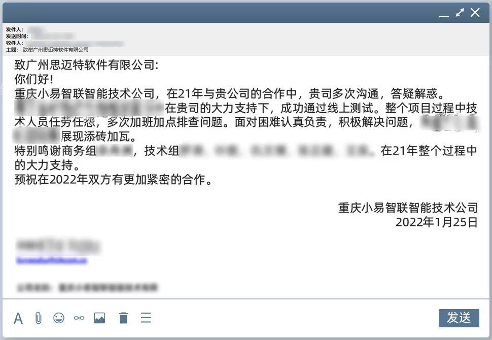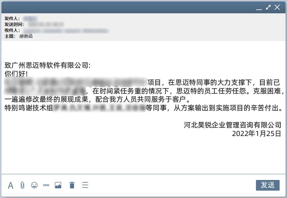 集涓成河,感恩信任,思迈特软件会将这一封封诚挚感谢信化为前进的动力。未来,我们继续坚守初心,用实力和效率为客户解决难题,用更优的产品、更好的服务继续与客户携手共创美好未来!