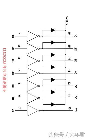 ①ULN2003A 内部包含七个独立的达林顿管驱动单路,单个达林顿管集电极可 输出 500mA 电流;