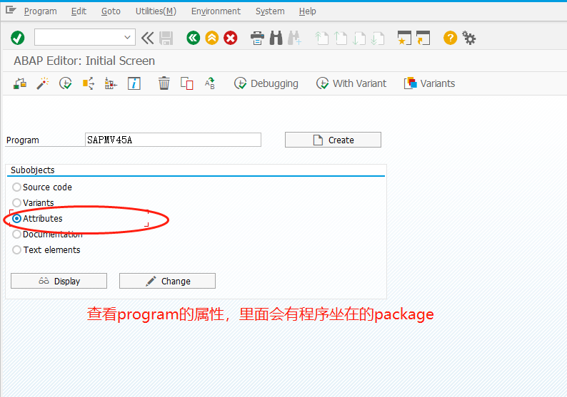 2.进入se38,然后查看查看程序对应的package