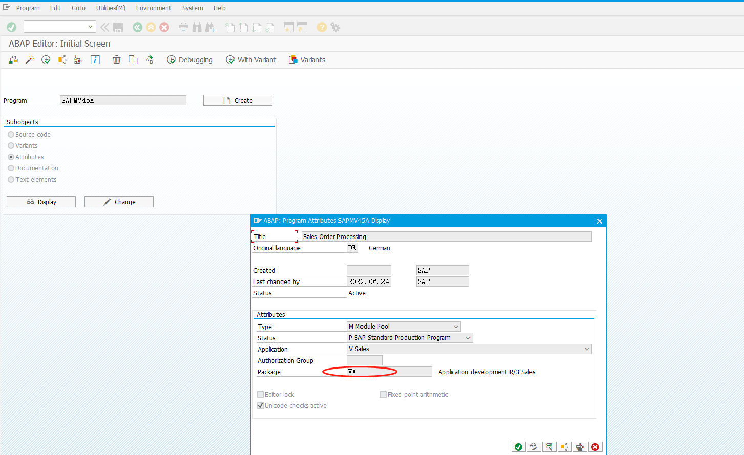 1.首先进入相关作业代号,如va01 ,然后查看作业程序名