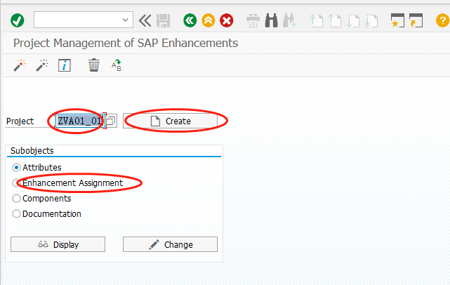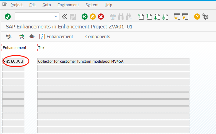 2.上面一步完成之后,还需要在T-code:CMOD里面创建一个项目对象,我们把第一步中的出口对象维护进项目对象之后,然后激活项目对象,对应的增强功能才能使用