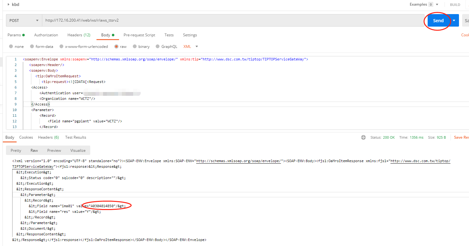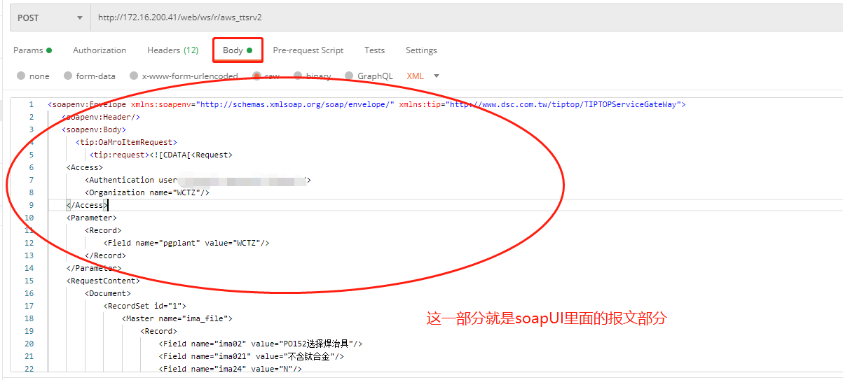 *&---------------------------------------------------------------------* *& 包含 Z_HTTPTEST02_CPF_XML *&---------------------------------------------------------------------* "设置POST body的报文 DATA: lv_xml TYPE string, lv_xml01 TYPE string, lv_xml02 TYPE string, lv_xml03 TYPE string, lv_xml04 TYPE string, lv_xml05 TYPE string, lv_xml06 TYPE string, lv_xml07 TYPE string, lv_xml08 TYPE string, lv_xml09 TYPE string, lv_xml10 TYPE string, lv_xml11 TYPE string, lv_xml12 TYPE string, lv_xml13 TYPE string, lv_xml14 TYPE string, lv_xml15 TYPE string, lv_xml16 TYPE string, lv_xml17 TYPE string, lv_xml18 TYPE string, lv_xml19 TYPE string, lv_xml20 TYPE string, lv_xml201 TYPE string, lv_xml21 TYPE string, lv_xml22 TYPE string, lv_xml23 TYPE string, lv_xml24 TYPE string, lv_xml25 TYPE string, lv_xml26 TYPE string, lv_xml27 TYPE string, lv_xml28 TYPE string, lv_xml29 TYPE string, lv_xml30 TYPE string, lv_xml31 TYPE string, lv_xml32 TYPE string, lv_xml33 TYPE string, lv_xml34 TYPE string, lv_xml35 TYPE string, lv_xml36 TYPE string, lv_xml37 TYPE string, lv_xml38 TYPE string, lv_xml39 TYPE string, lv_xml40 TYPE string, lv_xml41 TYPE string, lv_xml42 TYPE string, lv_xml43 TYPE string, lv_xml44 TYPE string, lv_xml45 TYPE string, lv_xml46 TYPE string. data: lv_xml_head type string, lv_xml_body type string, lv_xml_foot type string. lv_xml01 = '<soapenv:Envelope xmlns:soapenv="http://schemas.xmlsoap.org/soap/envelope/" xmlns:tip="http://www.dsc.com.tw/tiptop/TIPTOPServiceGateWay">'. lv_xml02 = ' <soapenv:Header/>'. lv_xml03 = ' <soapenv:Body>'. lv_xml04 = ' <tip:OaMroItemRequest>'. lv_xml05 = ' <tip:request><![CDATA[<Request>'. lv_xml06 = ' <Access>'. lv_xml07 = ' <Authentication user="xxxx" password="xxxx"/>'. lv_xml08 = ' <Organization name="WCTZ"/>'. lv_xml09 = ' </Access>'. lv_xml10 = ' <Parameter>'. lv_xml11 = ' <Record>'. lv_xml12 = ' <Field name="pgplant" value="WCTZ"/>'. lv_xml13 = ' </Record>'. lv_xml14 = ' </Parameter>'. lv_xml15 = ' <RequestContent>'. lv_xml16 = ' <Document>'. CONCATENATE lv_xml01 lv_xml02 lv_xml03 lv_xml04 lv_xml05 lv_xml06 lv_xml07 lv_xml08 lv_xml09 lv_xml10 lv_xml11 lv_xml12 lv_xml13 lv_xml14 lv_xml15 lv_xml16 INTO lv_xml_head. DO 1 TIMES. lv_xml17 = |<RecordSet id="{ sy-index }">|. lv_xml18 = ' <Master name="ima_file">'. lv_xml19 = ' <Record>'. lv_xml20 = ' <Field name="ima02" value="PO152选择焊治具"/>'. lv_xml201 = ' <Field name="ima021" value="不含钛合金"/>'. lv_xml21 = ' <Field name="ima24" value="N"/>'. lv_xml22 = ' <Field name="ima44" value="套"/>'. lv_xml23 = ' <Field name="ima25" value="套"/>'. lv_xml24 = ' <Field name="hsl" value="1"/>'. lv_xml25 = ' <Field name="ima08" value="P"/>'. lv_xml26 = ' <Field name="ima71" value="1080"/>'. lv_xml27 = ' <Field name="ima06" value="7001"/>'. lv_xml28 = ' <Field name="ima35" value="D016"/>'. lv_xml29 = ' <Field name="pinpai" value=""/>'. lv_xml30 = ' <Field name="ima09" value="MRO_04"/>'. lv_xml31 = ' <Field name="ima45" value="1"/>'. lv_xml32 = ' <Field name="ima46" value="1"/>'. lv_xml33 = ' <Field name="erjie" value="DZ_A03"/>'. lv_xml34 = ' <Field name="sanjie" value="0401"/>'. lv_xml35 = ' <Field name="gdfqun" value="400101"/>'. lv_xml36 = ' <Field name="plant" value="WCTZ"/>'. lv_xml37 = ' <Field name="ima43" value=""/>'. lv_xml38 = ' </Record>'. lv_xml39 = ' </Master>'. lv_xml40 = ' </RecordSet>'. CONCATENATE lv_xml_body lv_xml17 lv_xml18 lv_xml19 lv_xml20 lv_xml201 lv_xml21 lv_xml22 lv_xml23 lv_xml24 lv_xml25 lv_xml26 lv_xml27 lv_xml28 lv_xml29 lv_xml30 lv_xml31 lv_xml32 lv_xml33 lv_xml34 lv_xml35 lv_xml36 lv_xml37 lv_xml38 lv_xml39 lv_xml40 into lv_xml_body. ENDDO. lv_xml41 = ' </Document>'. lv_xml42 = ' </RequestContent>'. lv_xml43 = '</Request>]]></tip:request>'. lv_xml44 = ' </tip:OaMroItemRequest>'. lv_xml45 = ' </soapenv:Body>'. lv_xml46 = '</soapenv:Envelope>'. CONCATENATE lv_xml41 lv_xml42 lv_xml43 lv_xml44 lv_xml45 lv_xml46 INTO lv_xml_foot. CONCATENATE lv_xml_head lv_xml_body lv_xml_foot INTO lv_xml.