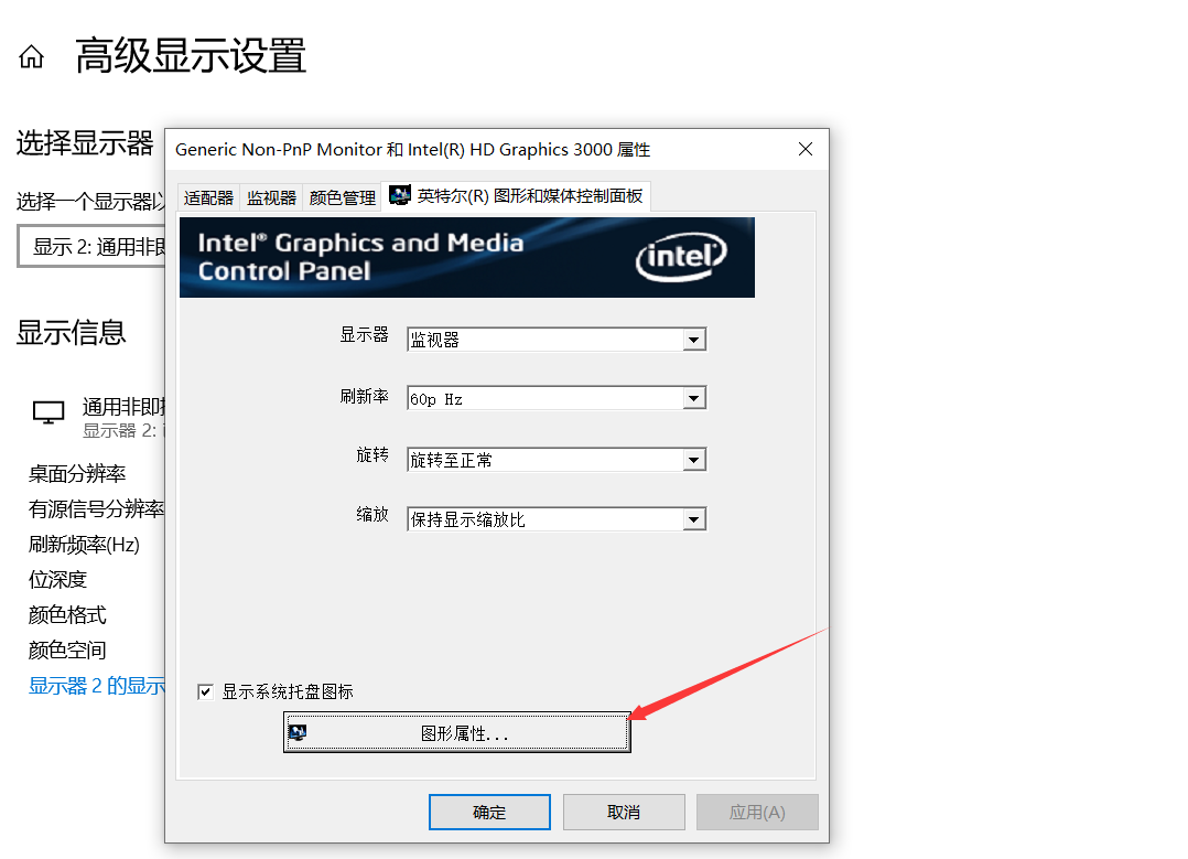 1、右键显示设置中 多显示器设置选择 仅在2上显示 ——>