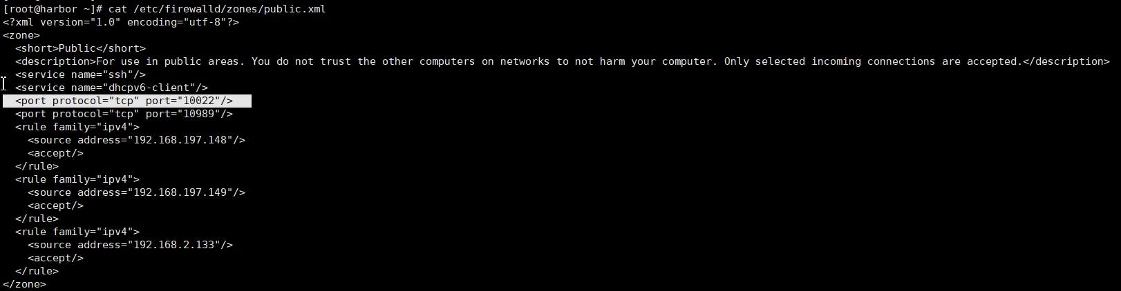 --也可以直接编辑防火墙配置文件/etc/firewalld/zones/public.xml,保存后重启防火墙才生效