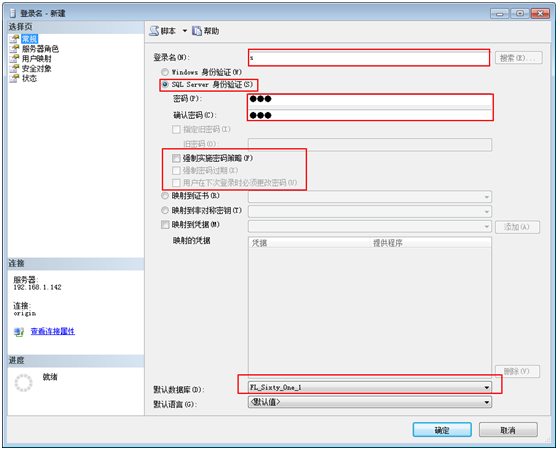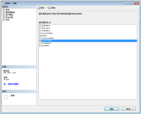 SQL Server数据库添加新用户,并为新用户赋予“serveradmin”的角色