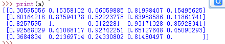 生成一个随机的5*5矩阵,找出最大值和最小值,然后把最大值和最小值分别用1和0表示,其他值则介于在0和1中间。
