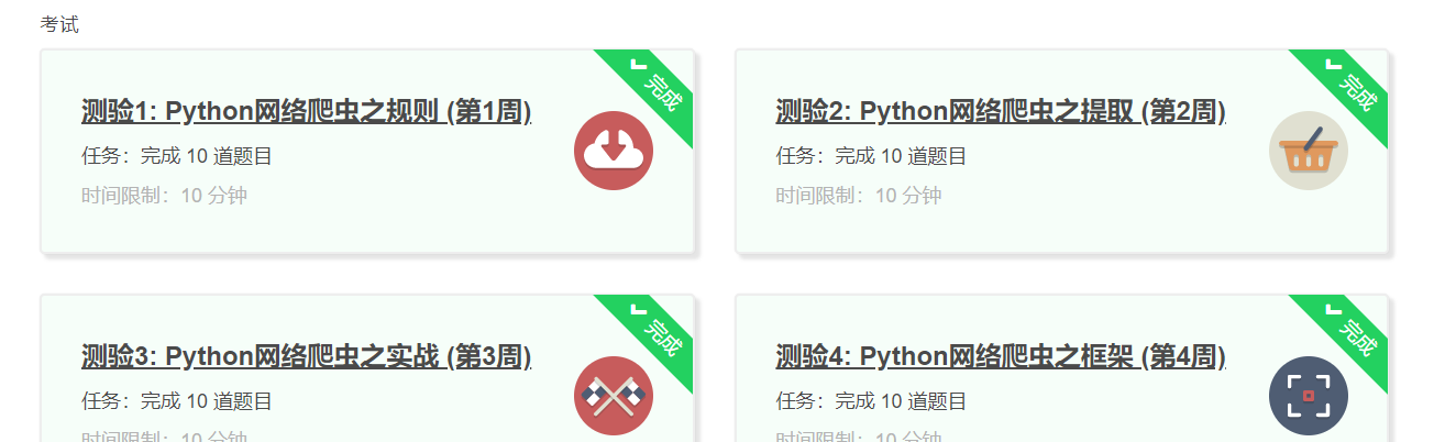 在嵩天老师的讲解带领下,我知道了爬虫的概念,在一次次的实例练习中,我慢慢地掌握了简掌握了简单定向网络数据爬取和网页解析的基本能力。虽然有源代码可以参考,但在实际练习中,还是遇到了很多问题,通过检查,发现大多数问题是因为自己的粗心造成的。这四周的课程学习下来,发现自己掌握的知识实在是太少了,学过得知识也掌握的不牢固。在接下的学习中,我要不断的温故而知新,不能只看一遍视频就结束了学习,要加强实践。遇到不会的知识点,也不能逃避问题,要及时百度解决问题。