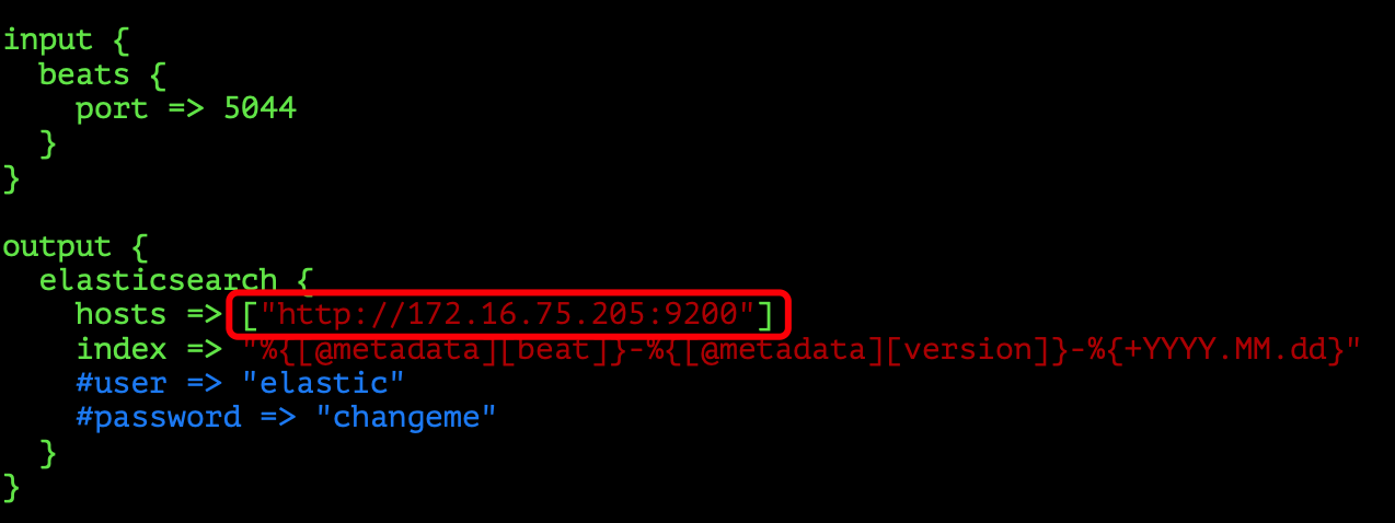 将 hosts => ["http://localhost:9200"] 改为 hosts => ["http://172.16.75.205:9200"]