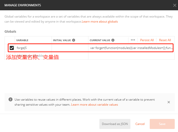 添加变量名称+变量值