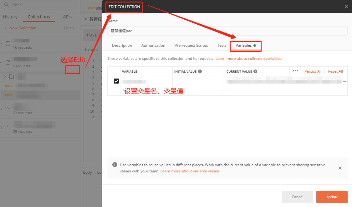 postman的四种变量:全局变量、环境变量、集合变量(项目变量)、普通变量