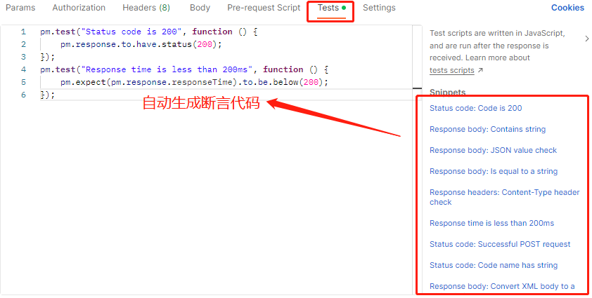 postman的断言:发送请求后,需要对返回的结果进行判断,验证预期结果与实际结果是否一致
