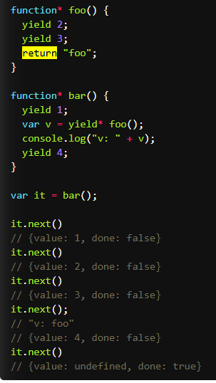 如果yiled * generator里面的有return 的值会赋值为外面的属性中,并且外面的还会继续