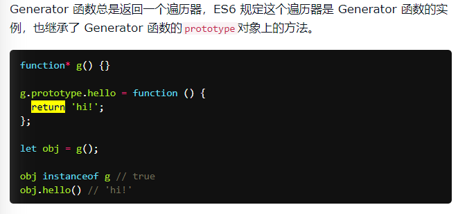 2、generator函数返回的是遍历器对象,所有类似iterator接口