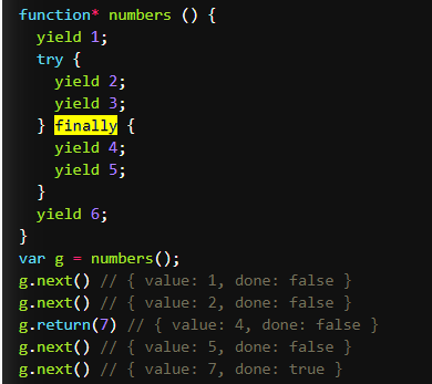 gener .return(6) ===== {value:6:done:false}