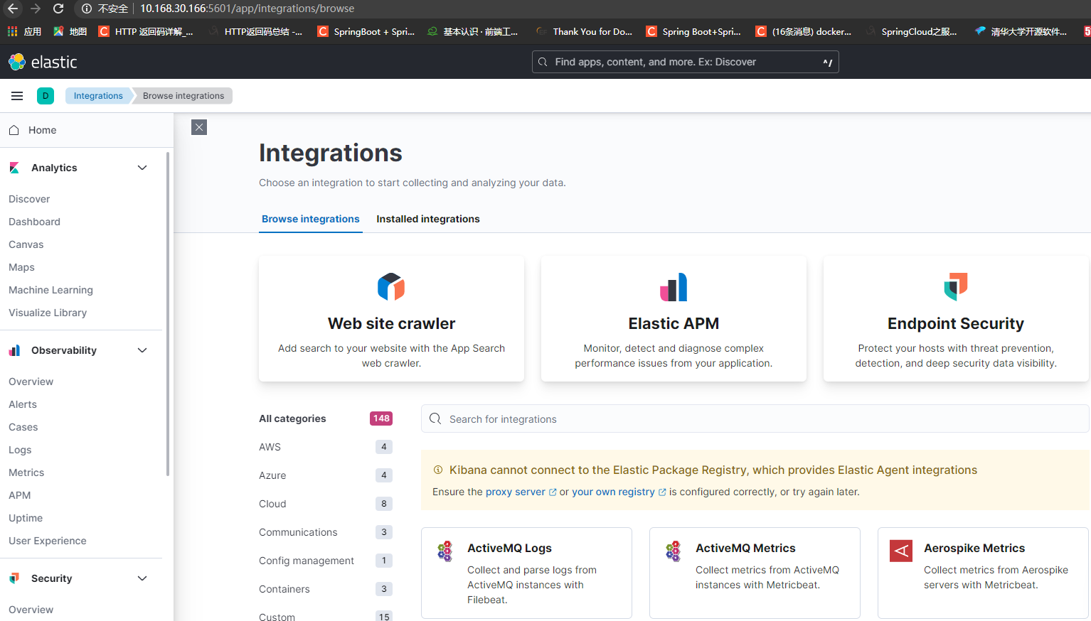浏览器查看效果,输入自己的IP:5601查看到如下页面就表示安装成功了: