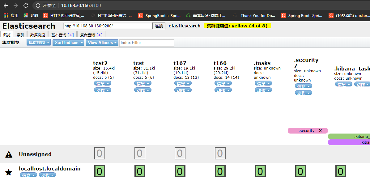 浏览器查看效果,输入ip:9100,进去后连接到自己的elasticsearch,看到这个界面就表示成功了: