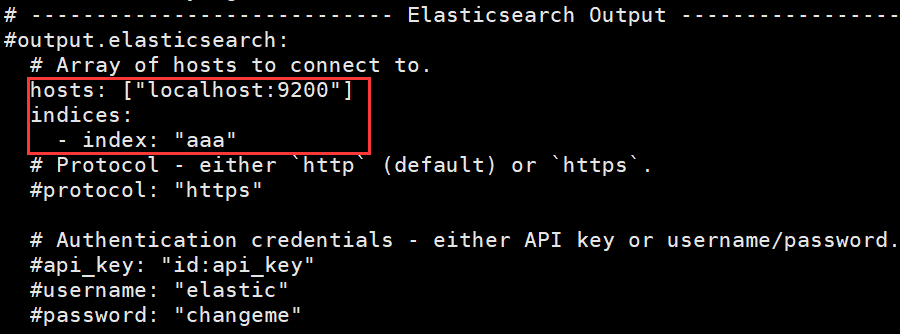 输出配置,以文件输出和存进elasticsearch,注意yml文件的格式,空格一定不要少,配置错误启动会出现filebeat.service - Filebeat sends log files to Logstash or directly to Elasticsearch: