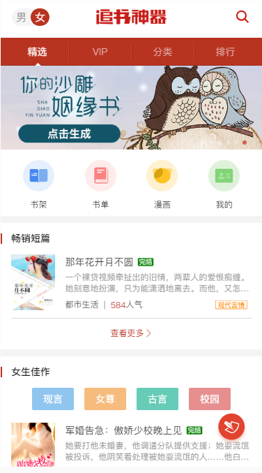 我直接截追书神器的布局来写,这是首页。其他页自行打开追书神器移动版网站查看