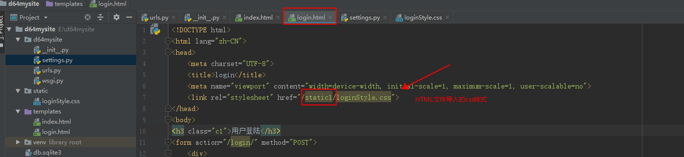 静态文件路径:static 用来导入css,js,等文件的。HTML文件导入的CSS/JS文件时的文件路径前缀/static1/要与settings.py文件的STATIC_URL = '/static1/'一致