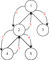 答案是1 2 4 5 3,不知道你有没有答对。我们通常所说的前序、中序后序,其实指的是中间节点被遍历时的位置,前序的顺序是中左右、中序是左中右、后续是左右中。所以上图中的遍历顺序如下箭头所示: