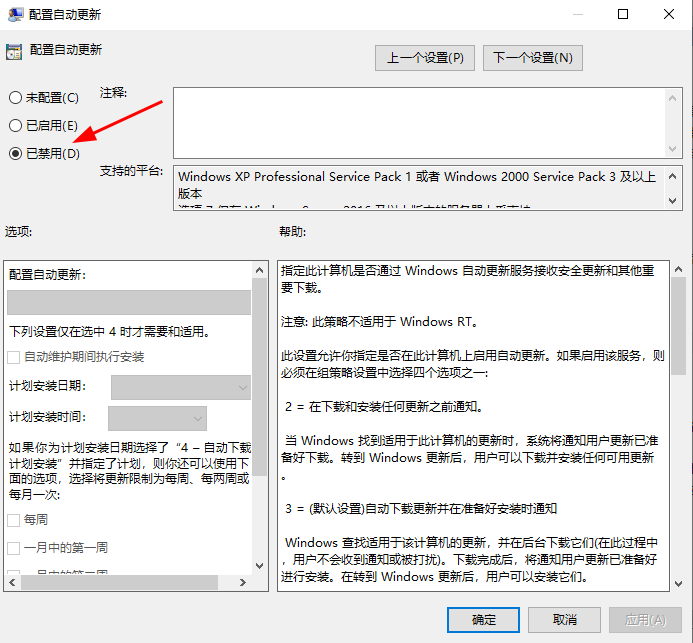 选择 已禁用,然后点击 应用 和 确定(见下图)