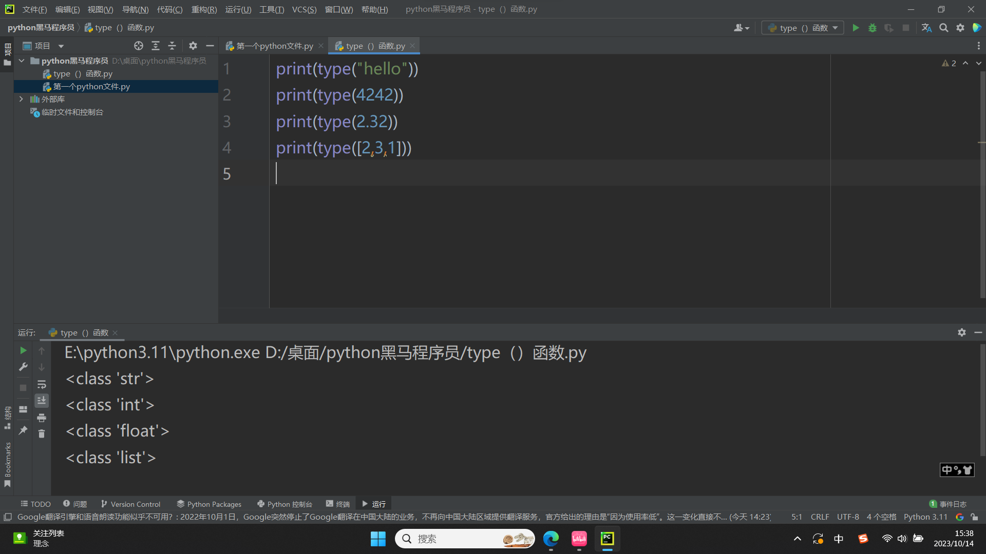 1 #将数字转换成字符串 2 num_str=str(11) 3 print(type(num_str),num_str) 4 5 #将浮点数转换成字符串 6 float_str=str(11.12) 7 print(type(float_str),float_str) 8 9 #将数字转换成浮点数 10 num_float = float(12) 11 print(type(num_float),num_float)