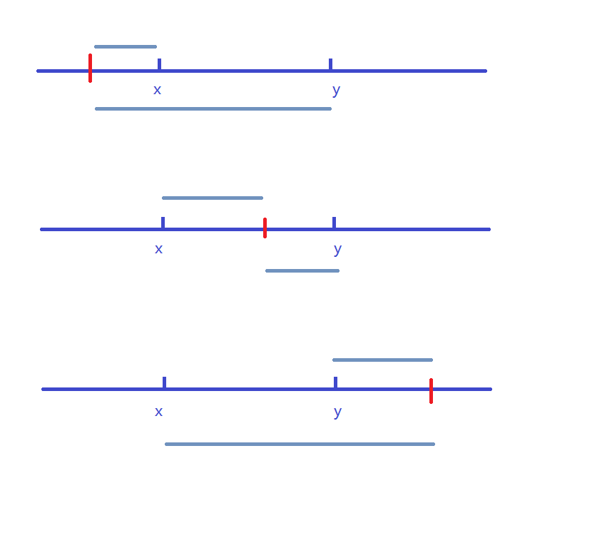 蓝灰色的部分是该点到一组点的距离和,可以看出当取点在最中间的时候,该点到一组点的距离和最小,设共有n个点,那么我们取点就取在第1个点和第n个点中间,第2个点和第n-1个点中间…最小的区间距离就是最中间的一组点,所以如果想要取点取在任意一组点的中间,只要把点控制在最中间一组点内就行(这就是为啥说偶数个点的时候取中点是其中一个解),然后因为点的个数不一定是偶数,也可能是奇数,当为奇数个点的时候分组会剩单独一个点,那么取的点到剩余这个点的最短距离为0,就是取在剩余这个点上,所以我们干脆直接取中点上就行。
