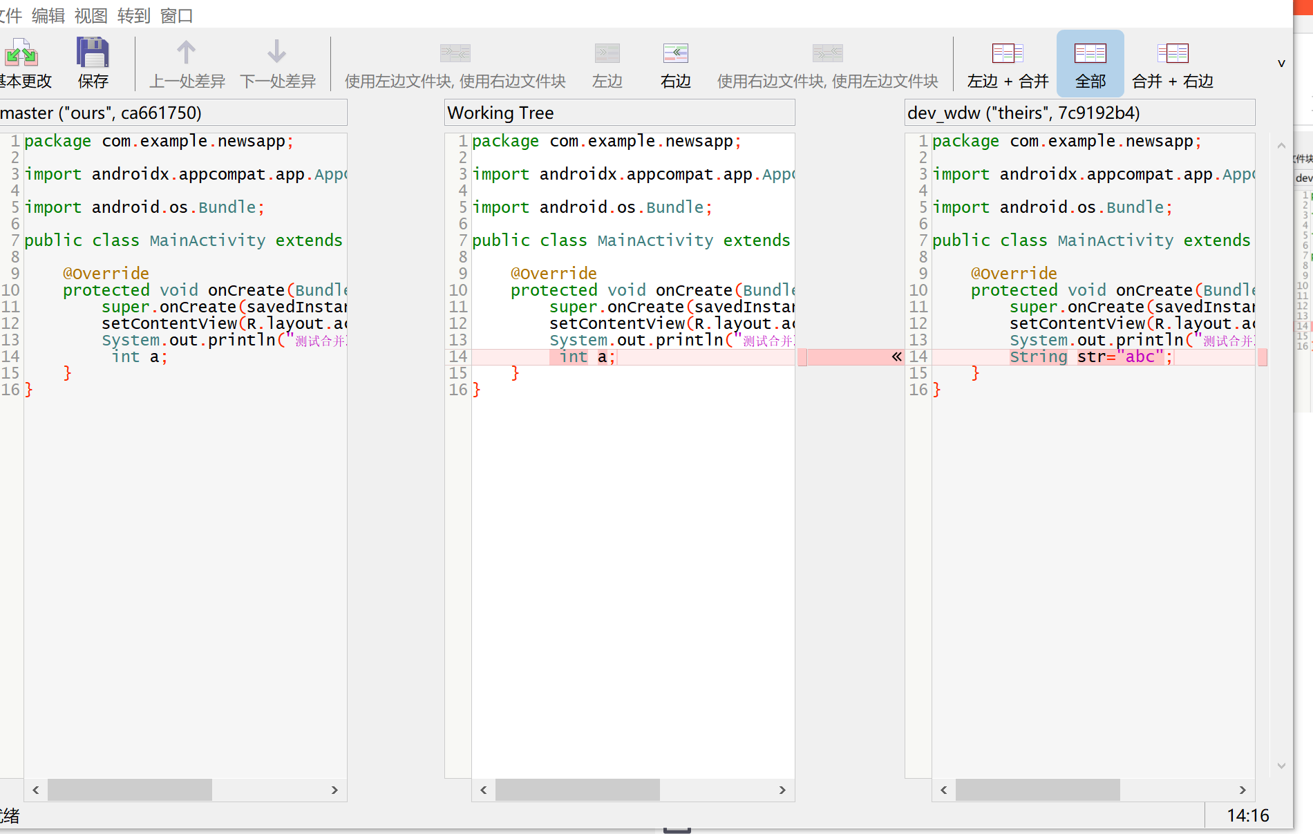 点击合并到工作树解决冲突