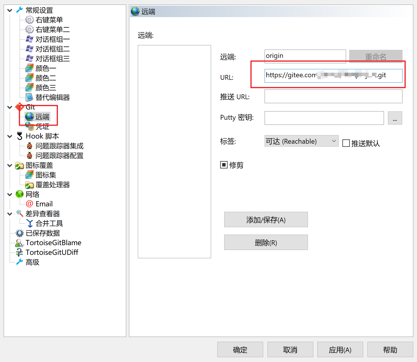 再次右击,设置,填好Git信息,再把远端地址填入URL就可以确定了。