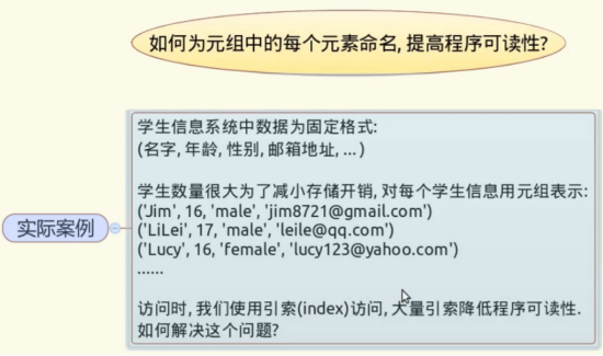 如何为元组中的每个元素命名,提高程序可读性。例如: