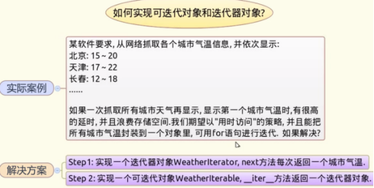 (3)可迭代的接口是__iter__()在此函数中需返回迭代器对象。迭代器接口是next()