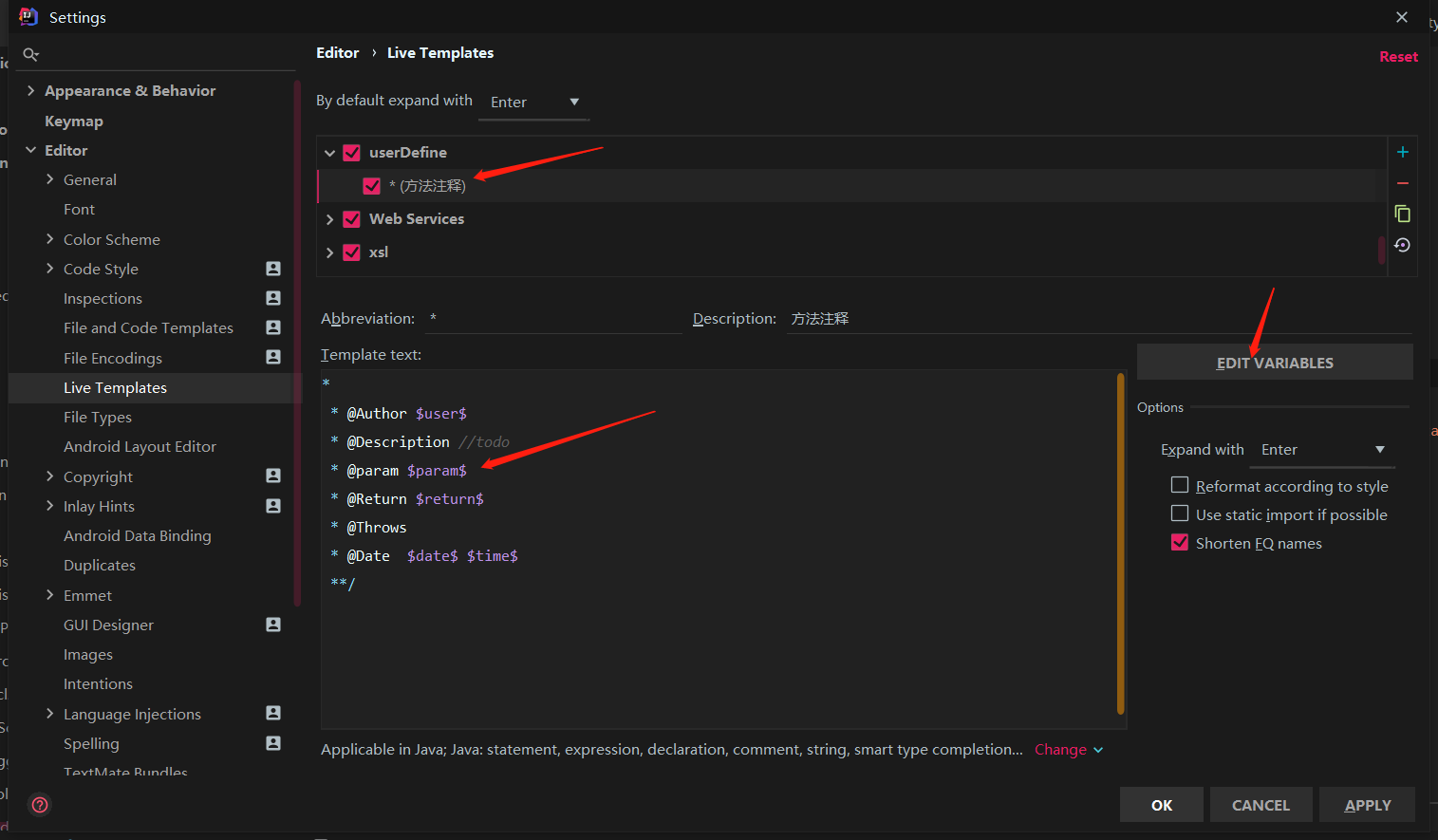 IDEA在方法自定义注释和解决自定义参数获取不到问题
