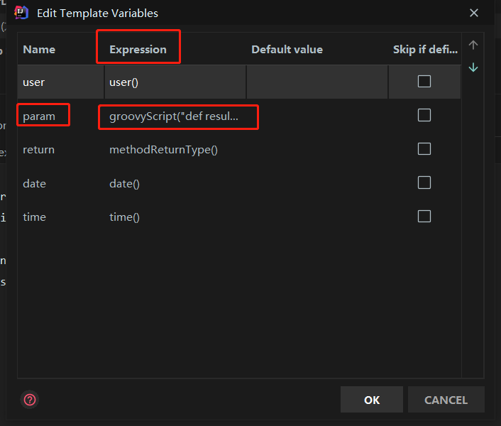 其中params变量的内容一定要放在Default value中!!!内容为: