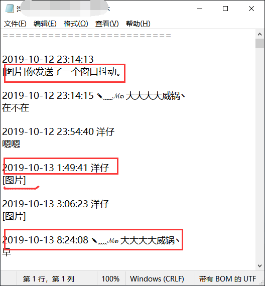 2. 编写代码图中框出来的文本是我们不需要的(比如说图片会在这里面显示为[图片]表情显示为[表情]) 所以我们把它替换掉,我这里用到了正则: