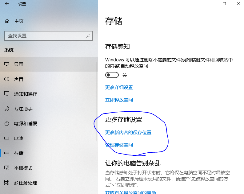 (打开windows设置--->系统--->存储--->更改新内容的保存位置,修改存储位置)