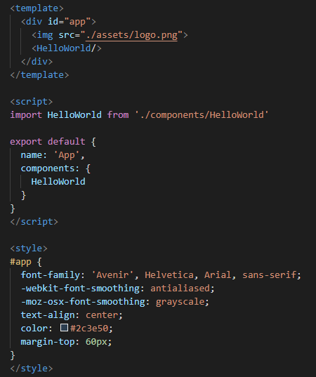 这里面就template script 和 style模版。这里看到有个helloworld的组件已经被导入了: