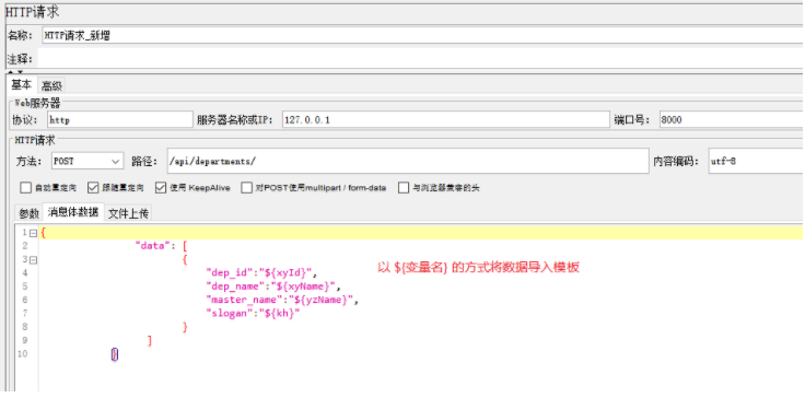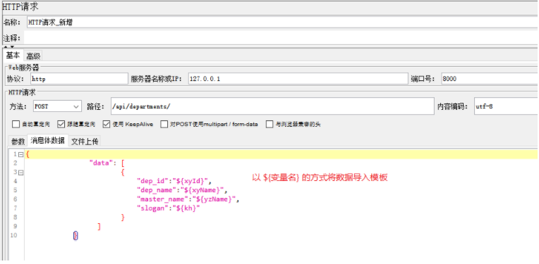 编写新增脚本(注意: 提交的是 JSON 数据,请设置信息头管理器)