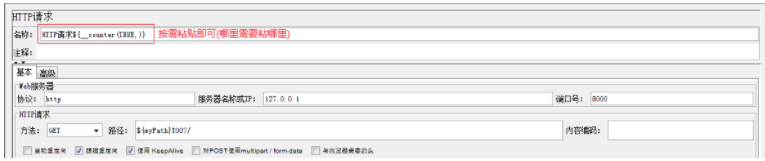 需求: 循环查询100次所有学院信息,在结果树中为请求结果添加标号