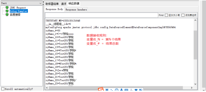 可以通过 DebugSampler 查看 Jmeter 底层变量的接收规则: