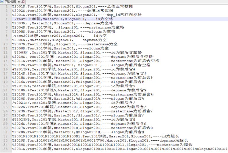 设计 CSV 文件存储测试数据,注意: